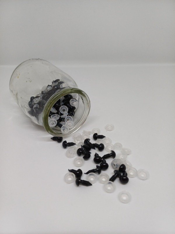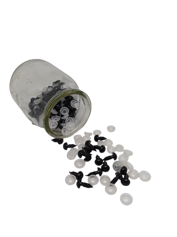 Descubrí nuestros ojos de seguridad de 10 mm, color negro. Estos ojos son perfectos para tus proyectos artesanales, ya que vienen con trabas de seguridad que evitan que se salgan, brindando mayor tranquilidad en su uso.