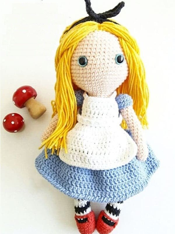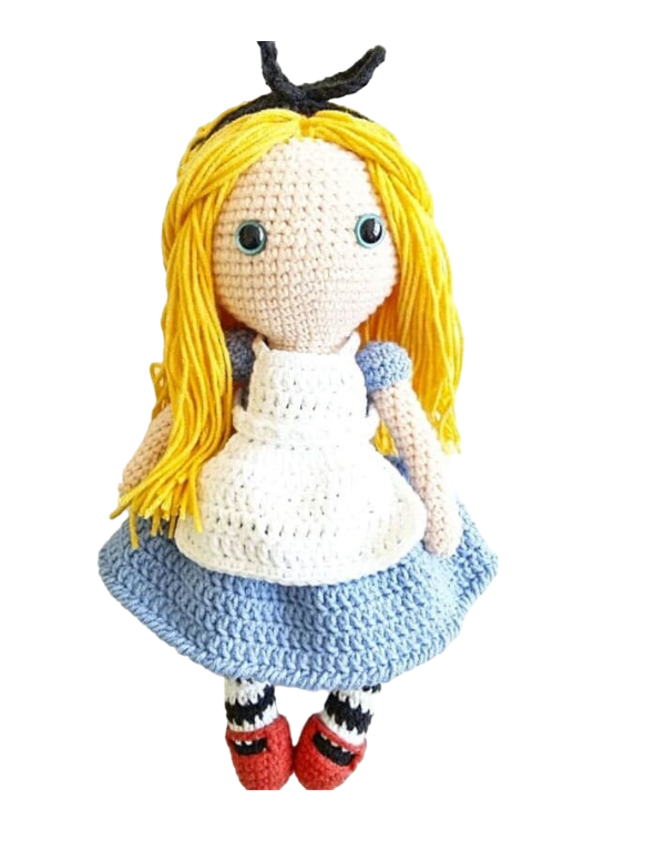 Patrón para tejer Amigurumi muñeca Alicia en el País de las Maravillas en crochet.