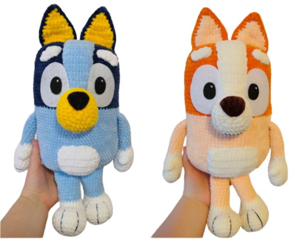 Patrón para tejer Amigurumi Bluey y Bingo en crochet.