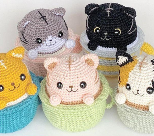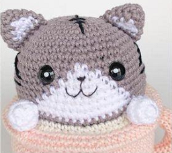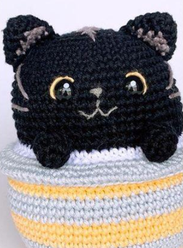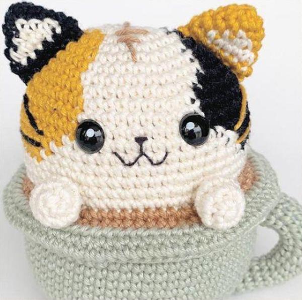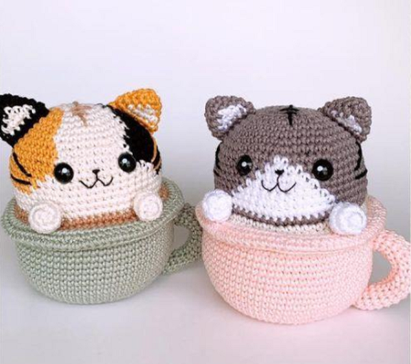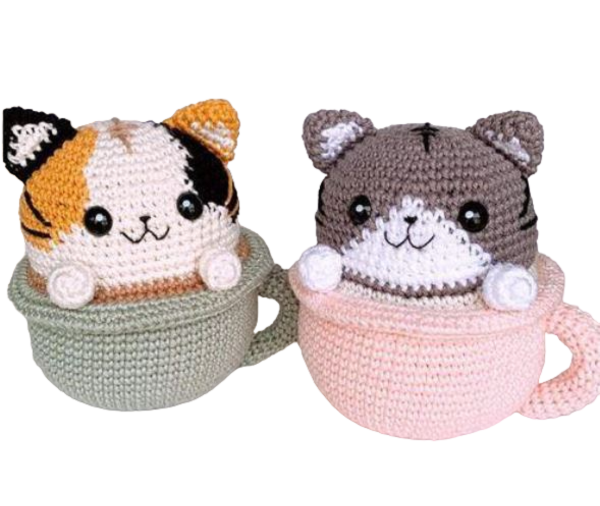 Patrón para tejer Amigurumi Gatito en taza en crochet.