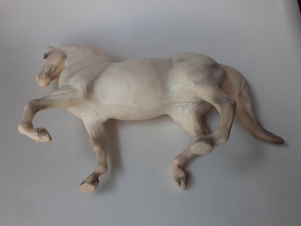 Se comenzó la restauración puliendo la pintura, pero se dejó sin terminar.