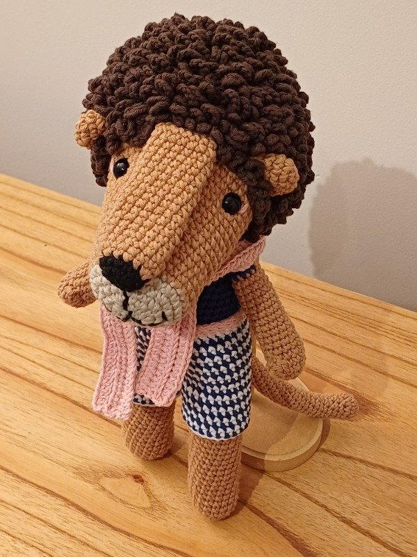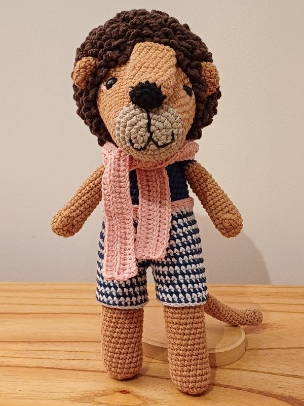 Simpático muñeco amigurumis León Sebastián tejido a crochet.