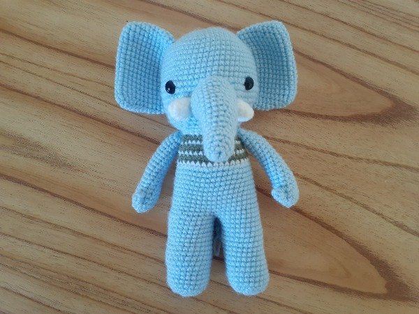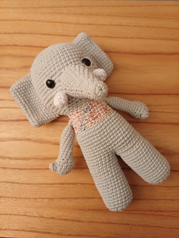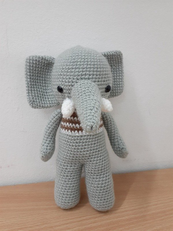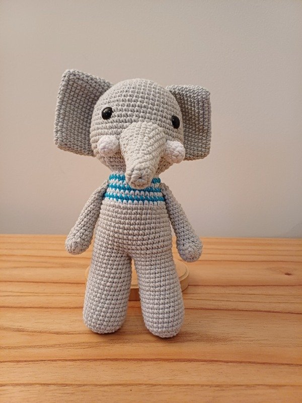 Muñeco tejido Elefante Salomón amigurumi en crochet.