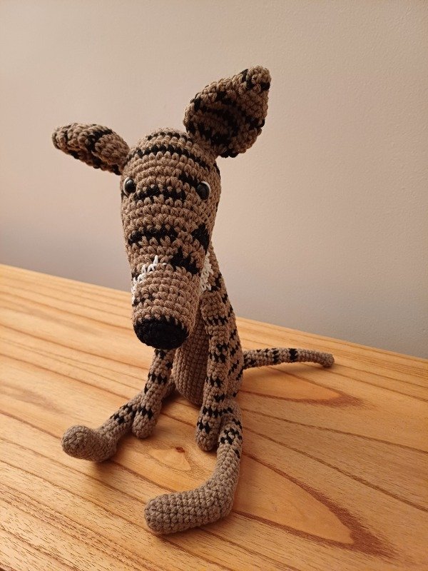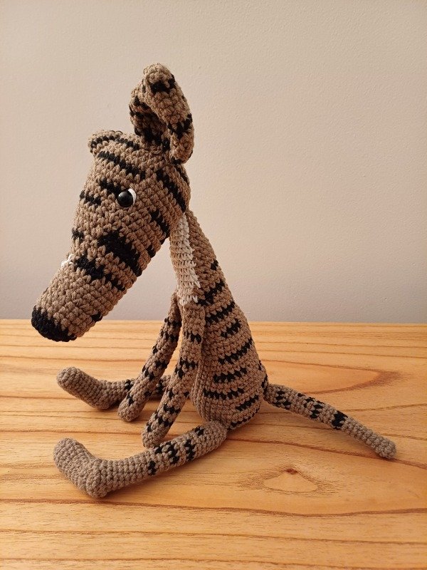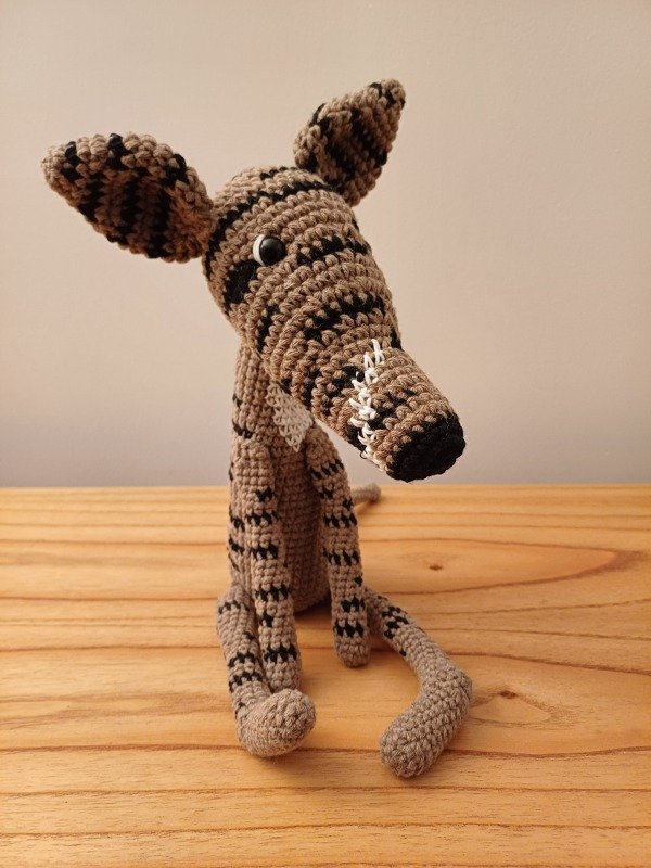 Muñeco de Perro Galgo atigrado amigurumi tejido a crochet