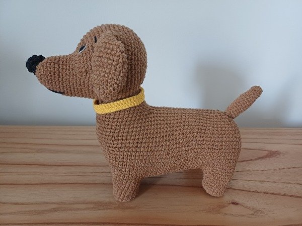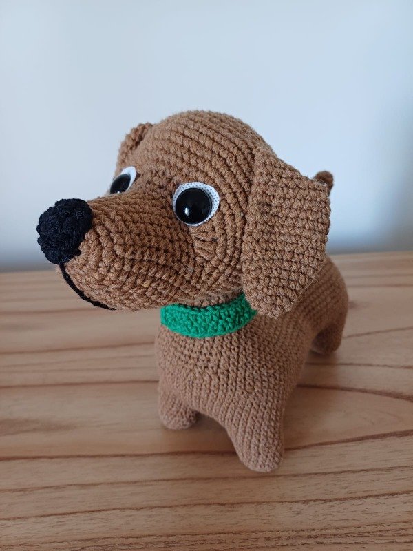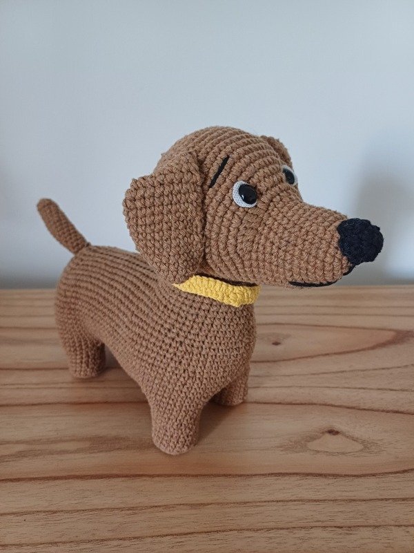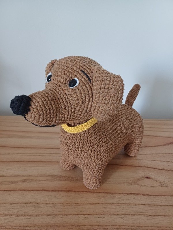 Muñeco tejido Perro Salchicha Roman amigurumi en crochet.