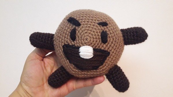 Personaje Shooky de BT21 en crochet, personaje mascota de Suga (BTS)