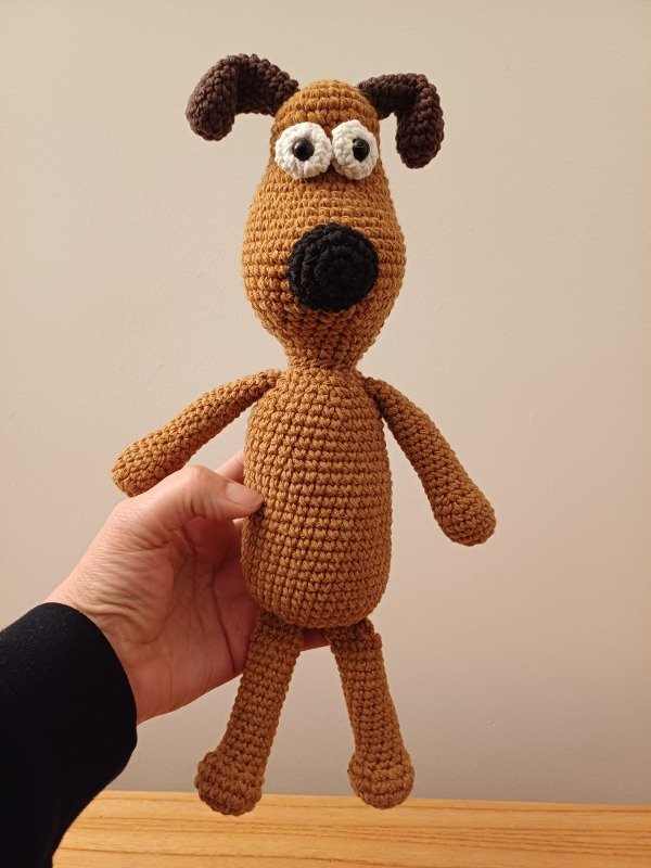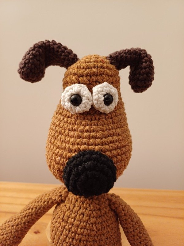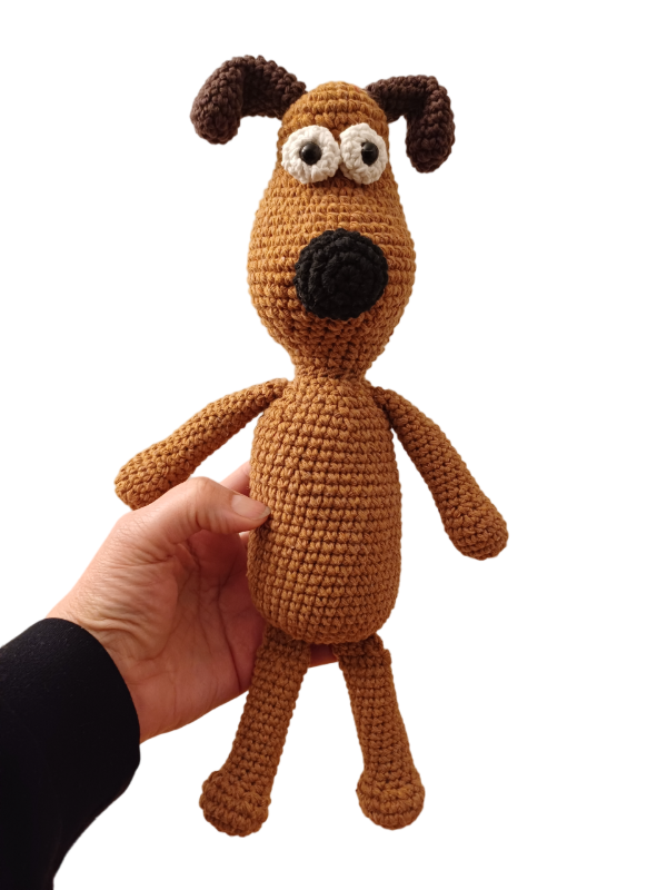Simpático perro Gromit de la serieWallace and Gromit amigurumis en crochet.