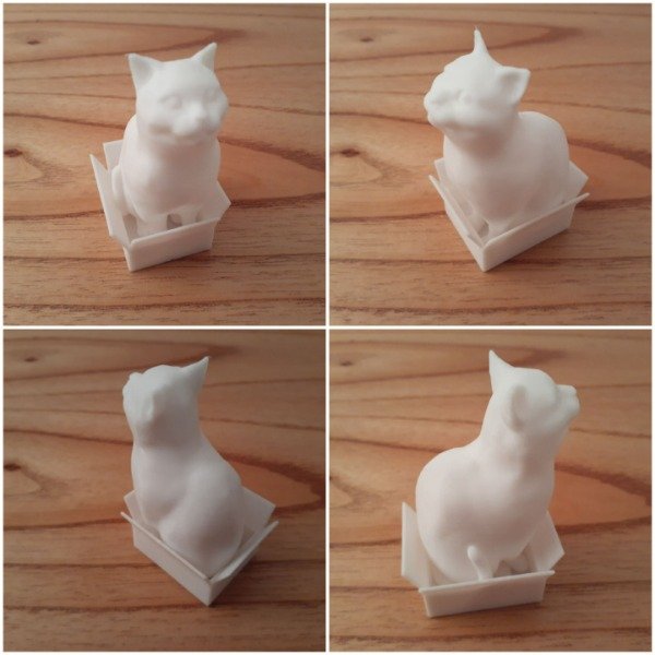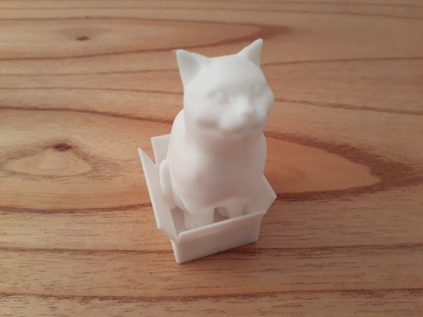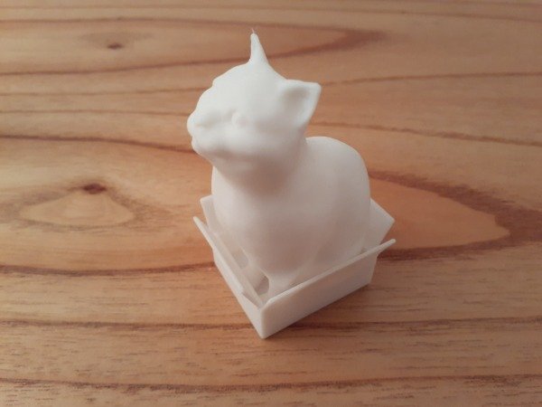 Simpático gatito en caja impreso en 3D listo para pintar y personalizar como tu mascota.